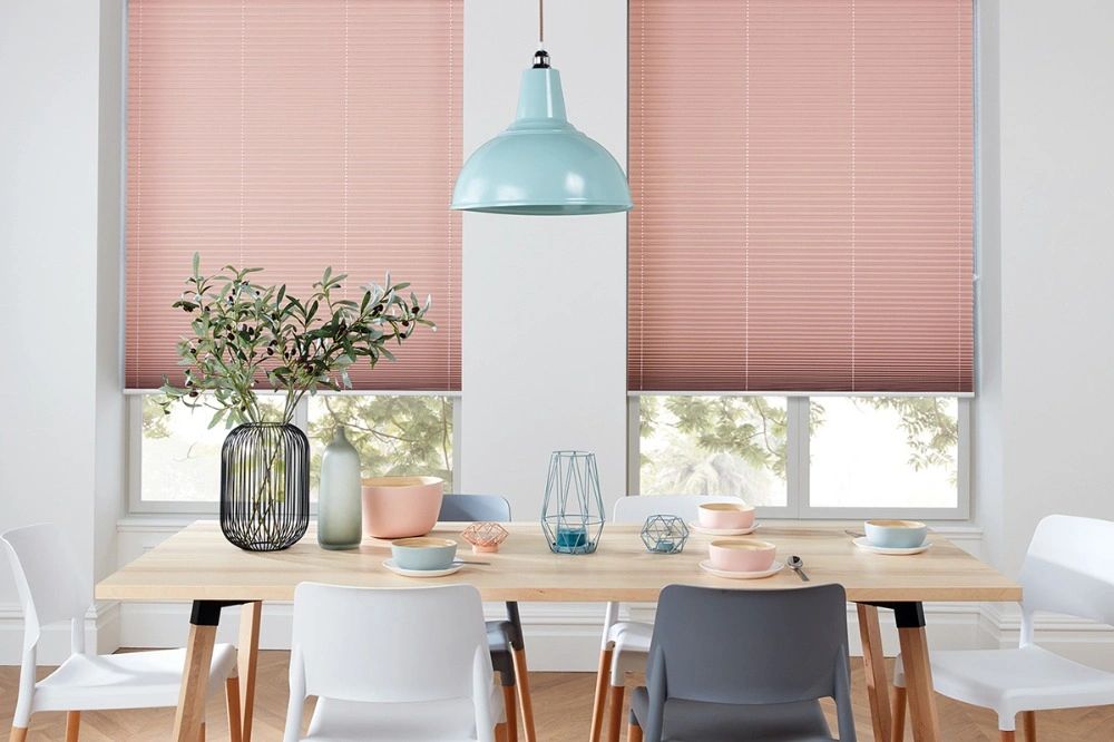 Pleated blinds offer a softer approach to window shading. This modern blind solution provides a contemporary appearance to a room. Choose from a wide range of standard and blackout fabrics, plain and pattered in colours to compliment your room décor. Hardware components are offered in a range of colour finishes. Child friendly operations promise a safe home.